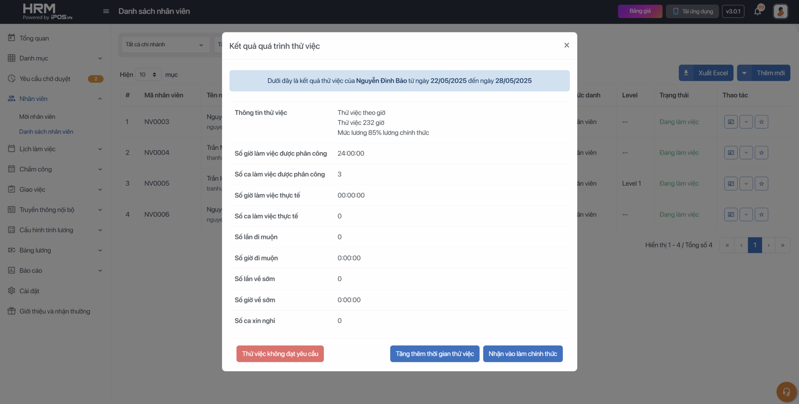 III. Chỉnh sửa lịch sử thử việc của nhân viên