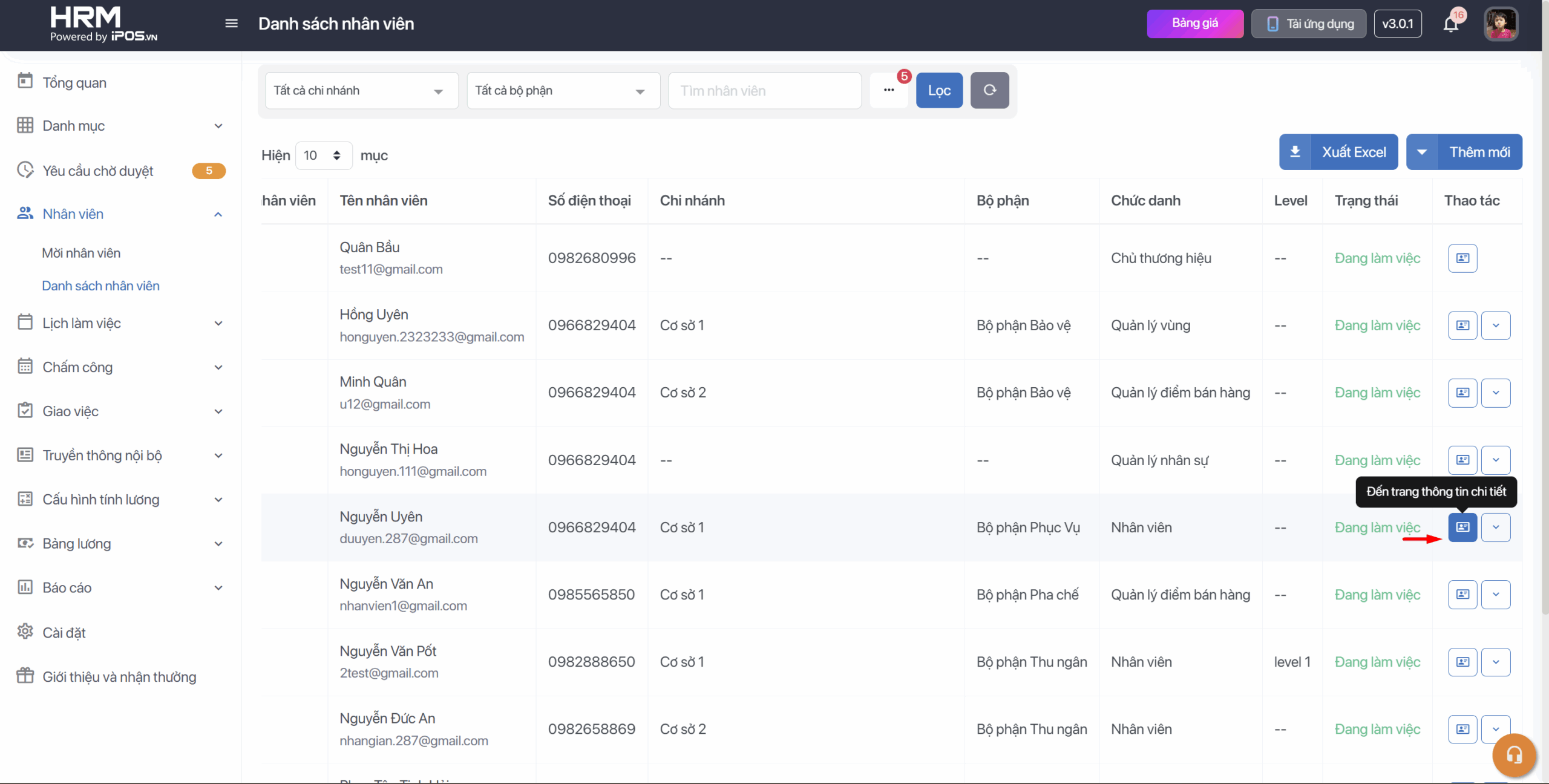 Bước 2: Chọn vào xem thông tin chi tiết của nhân viên bạn muốn chỉnh sửa → Chọn Công việc