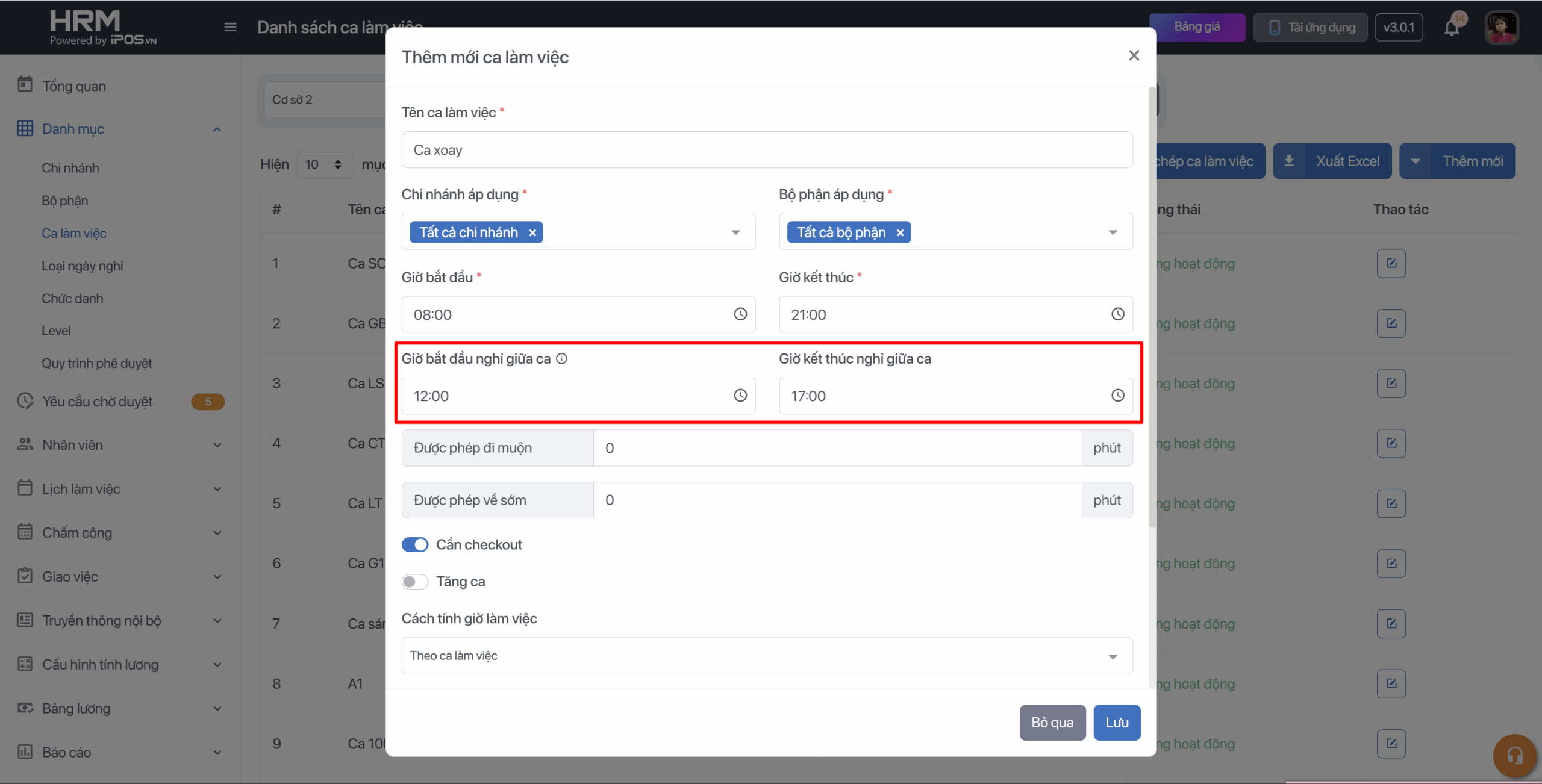 Hệ thống HRM hoàn toàn có thể đáp ứng được loại ca này tùy theo nhu cầu kiểm soát nhân viên của bạn. Sẽ có 2 cách khai báo ca như sau: