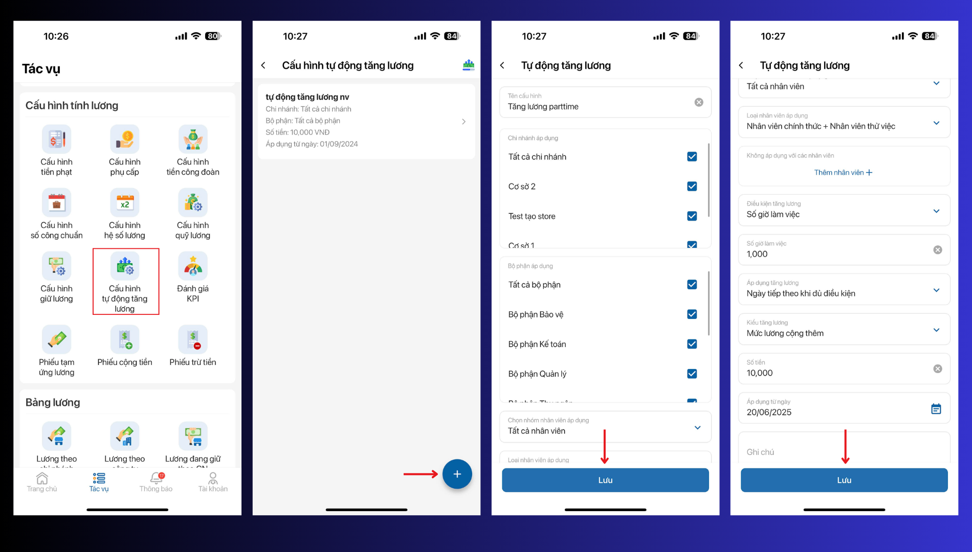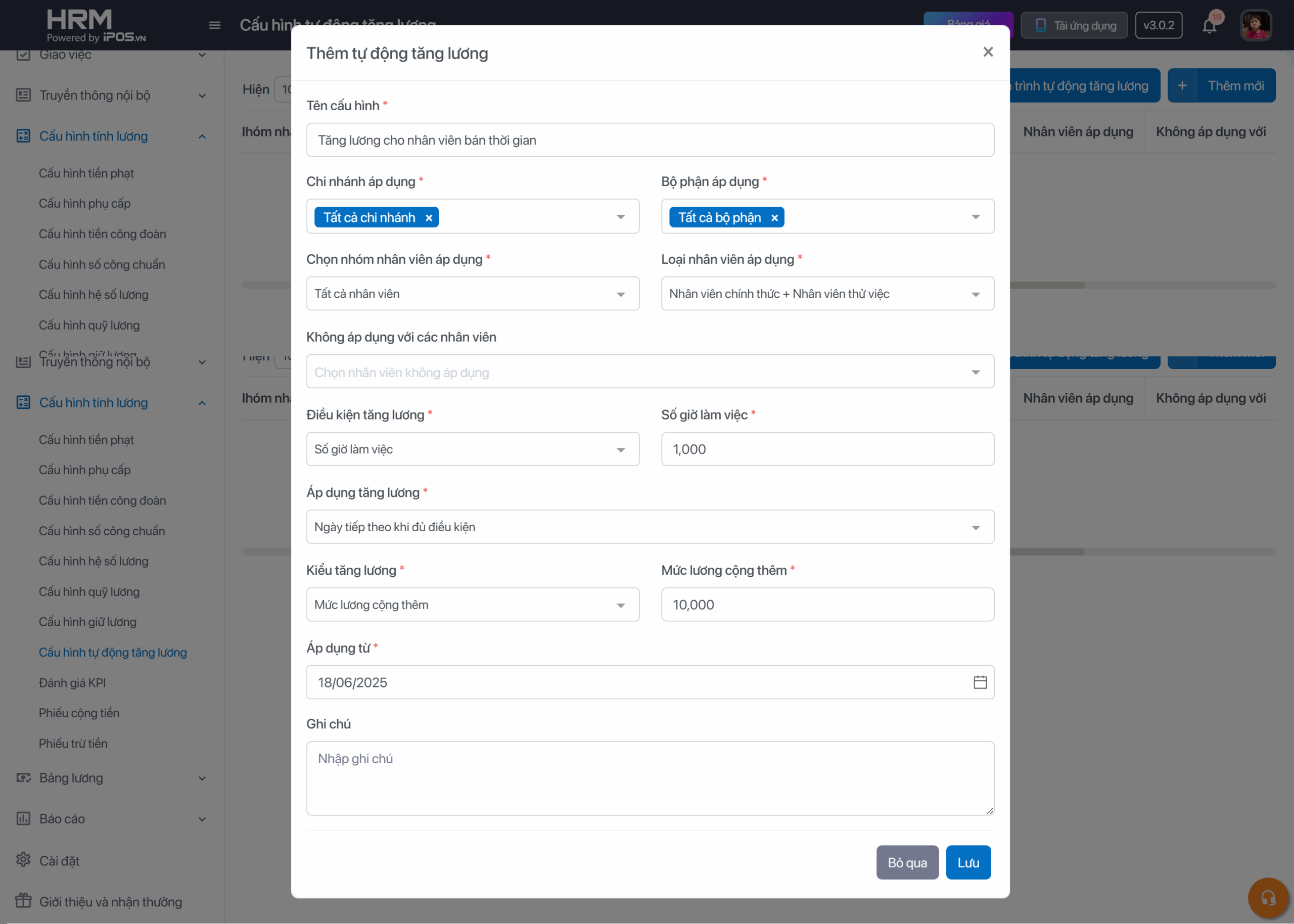 Bước 2: Cấu hình điều kiện tự động tăng lương
