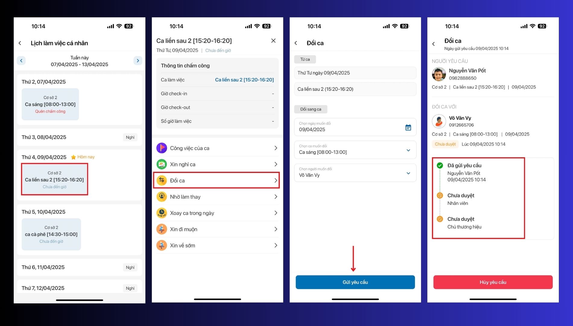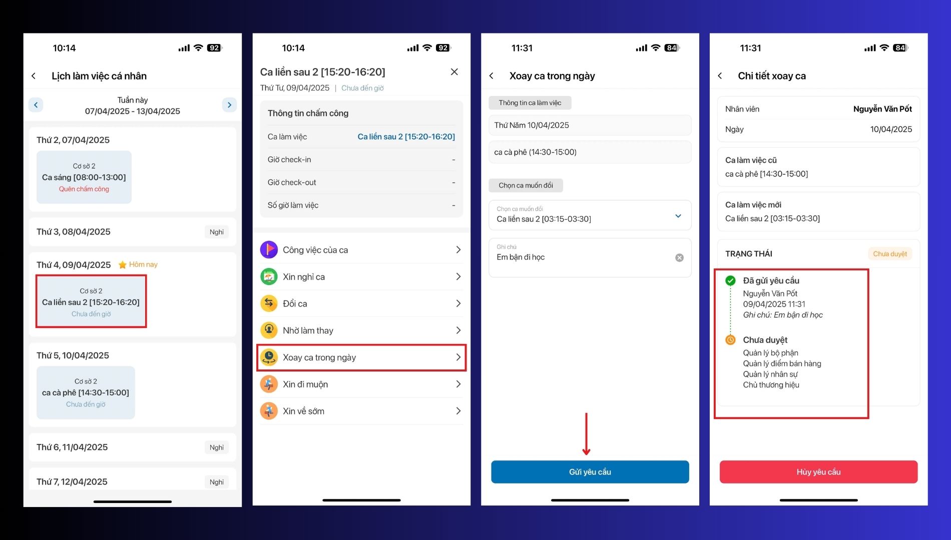 Bước 4: Chọn ca muốn xoay và nhấn Gửi yêu cầu.