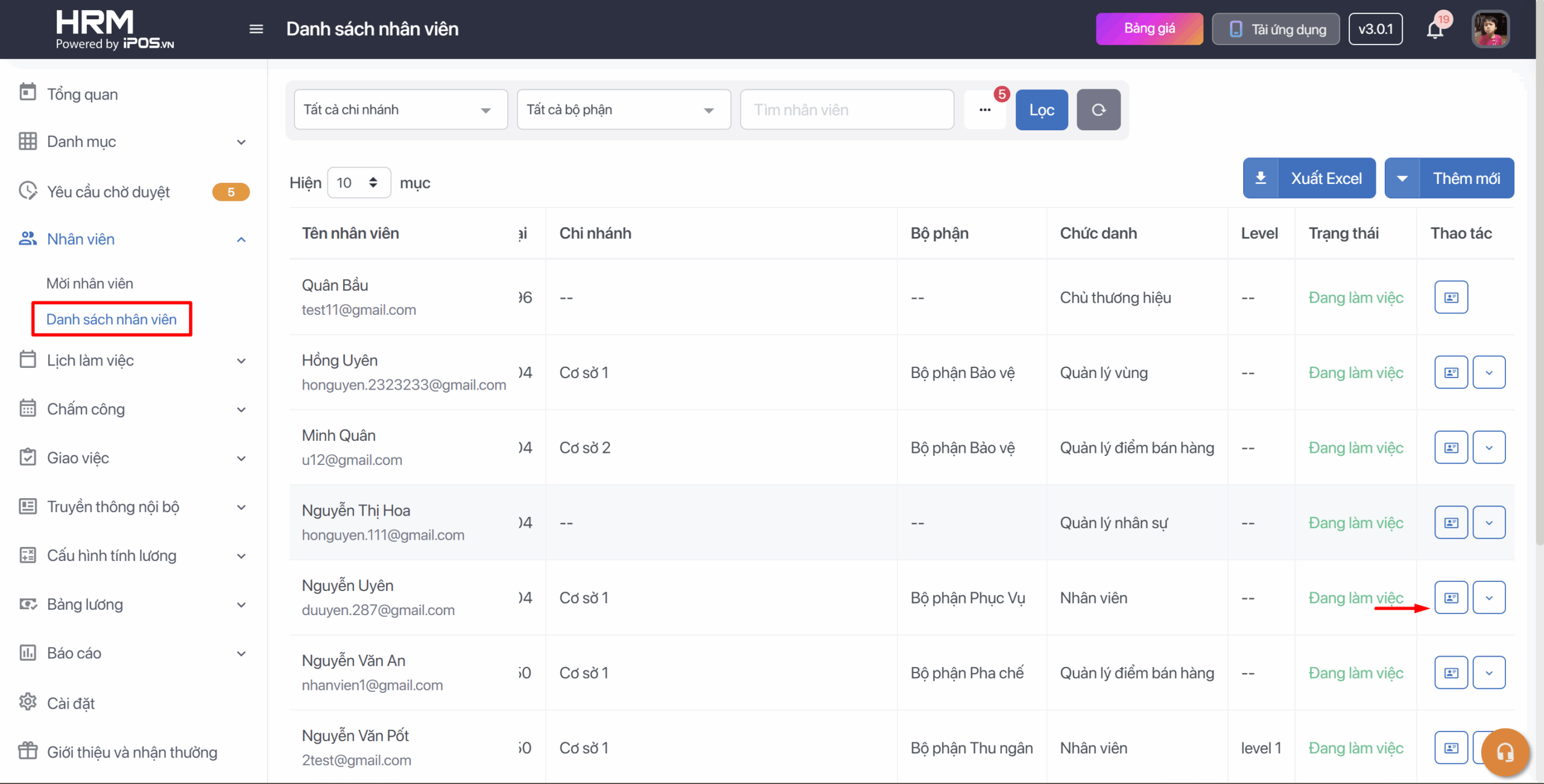 Bước 2: Chọn vào icon Thông tin chi tiết của nhân viên.