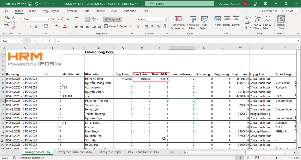 Bảng lương khi xuất ra file excel cũng sẽ bao gồm đầy đủ thông tin BHXH và thuế TNCN để phục vụ cho bộ phận HR và kế toán làm việc với cơ quan thuế và BHXH.