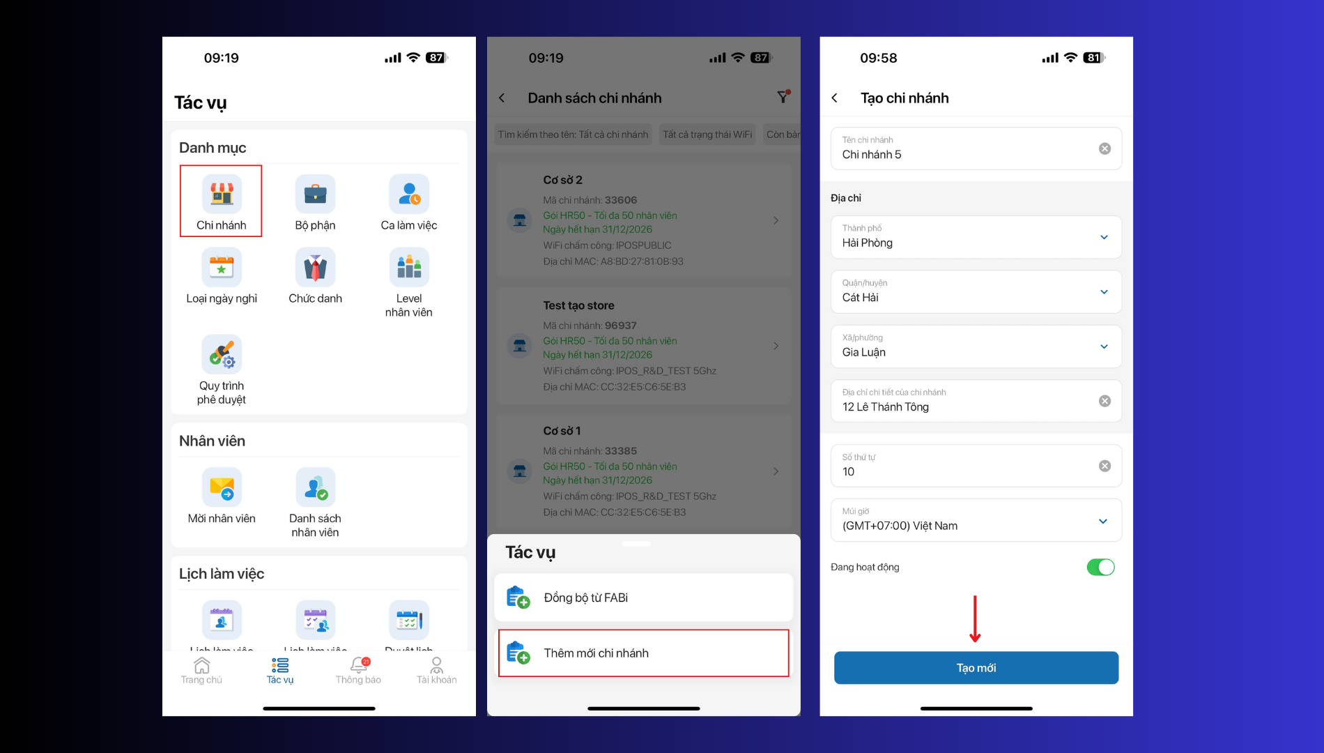 Bước 2: Thêm mới chi nhánh