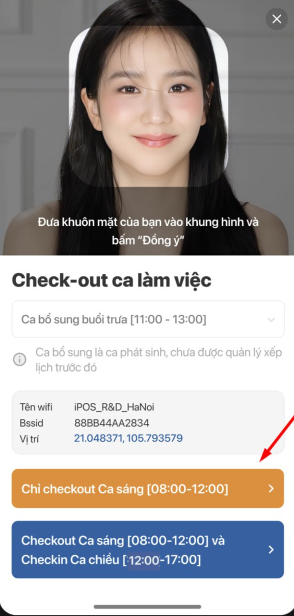 Ví dụ: Ca A 08:00-14:00, bạn cho phép check-out muộn tối đa 30 phút. Thì từ 14:30 trở đi, nút check-out sẽ biến mất và ca làm của nhân viên tự động chuyển sang trạng thái quên check-out.