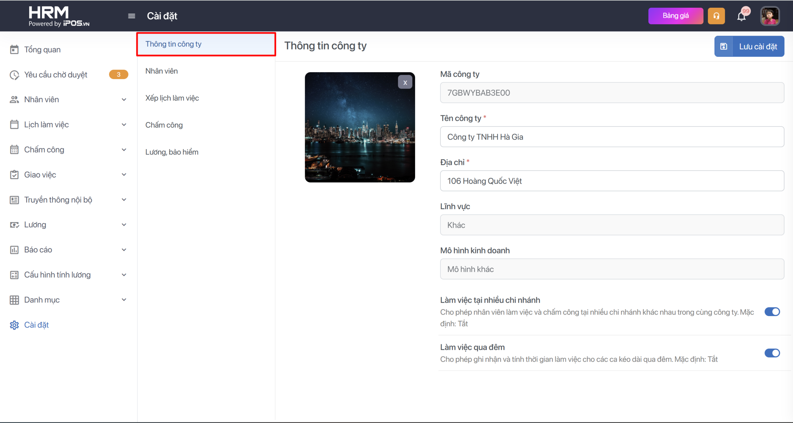 Trong trường hợp công ty bạn có nhiều điểm bán hàng, cần xếp lịch làm việc của một nhân viên linh hoạt tại nhiều chi nhánh bạn cần bật tính năng này lên mới có thể thêm danh sách chi nhánh mà nhân viên được phép làm việc vào thông tin hồ sơ của họ được. Nếu tắt đi, nhân viên chỉ được xếp lịch làm việc ở chi nhánh gốc của họ. ( Lưu ý: cấu hình này không ảnh hưởng đến việc nhân viên có thể chấm công tại các chi nhánh trong cùng một công ty nếu bắt đúng Wifi định danh chấm công của các chi nhánh đó) - Cấu hình cho phép chấm công bằng ca qua đêm