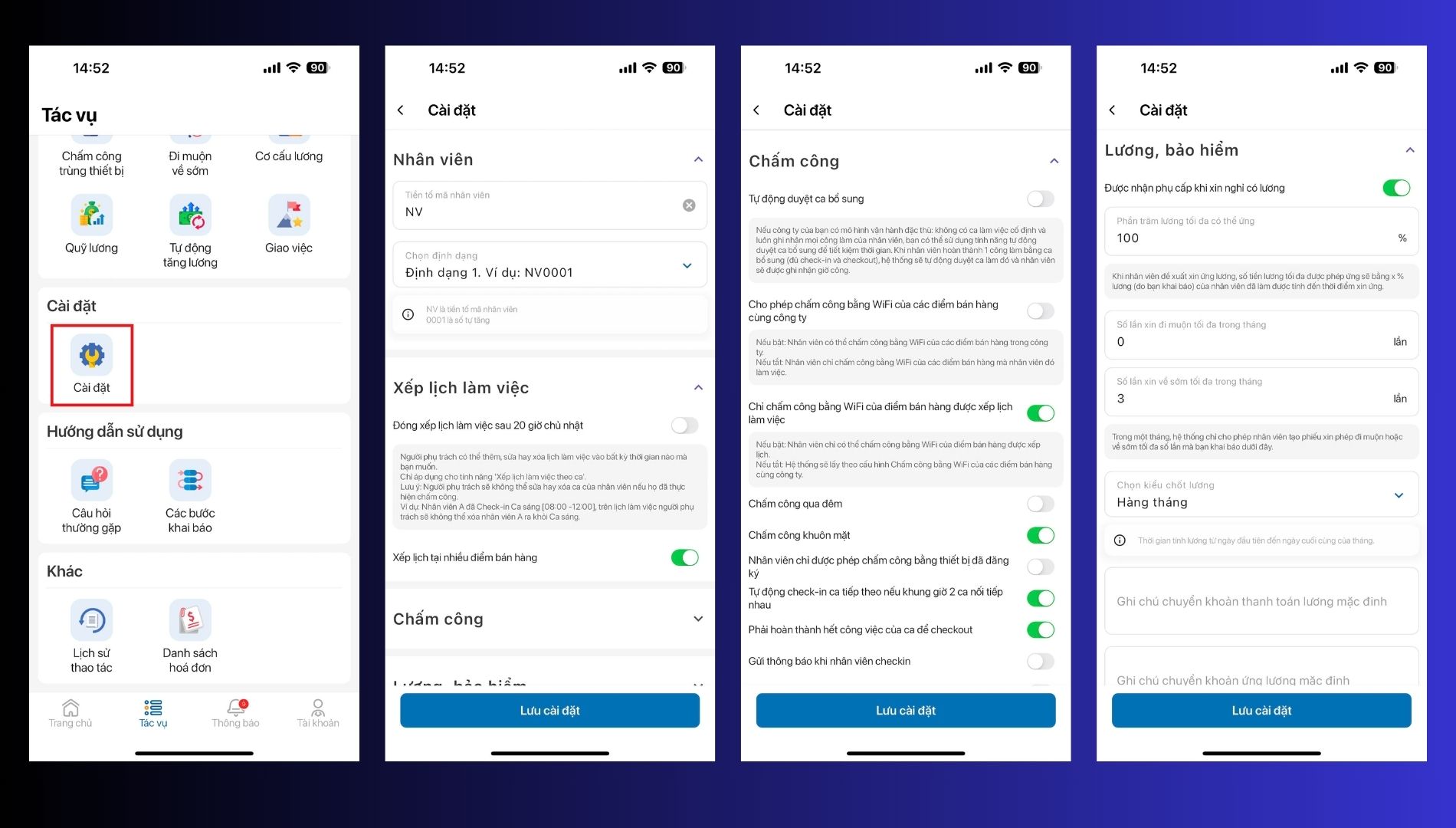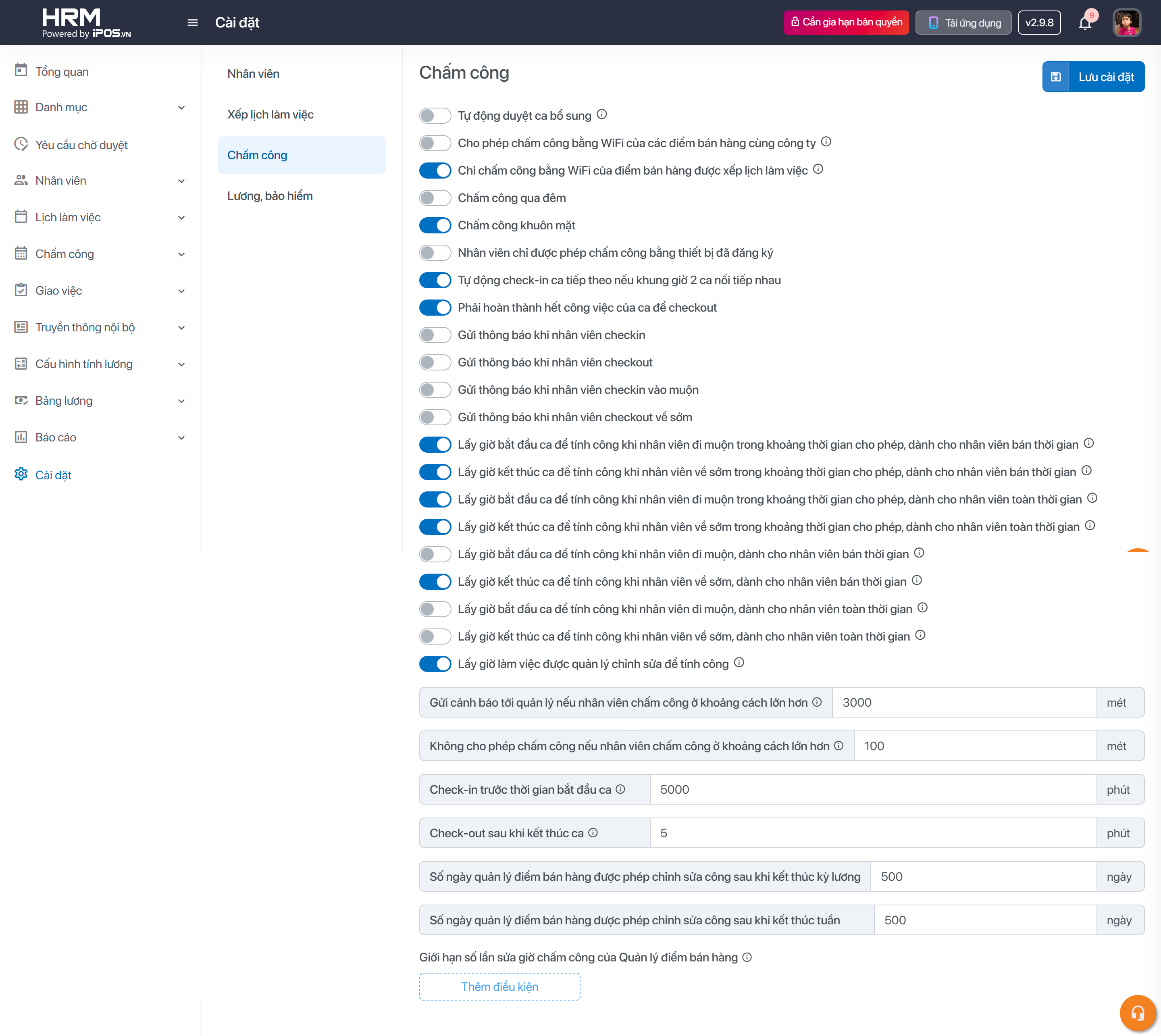 3. Cấu hình cho phép nhân viên chỉ chấm công bằng wifi của điểm bán hàng được xếp lịch làm việc