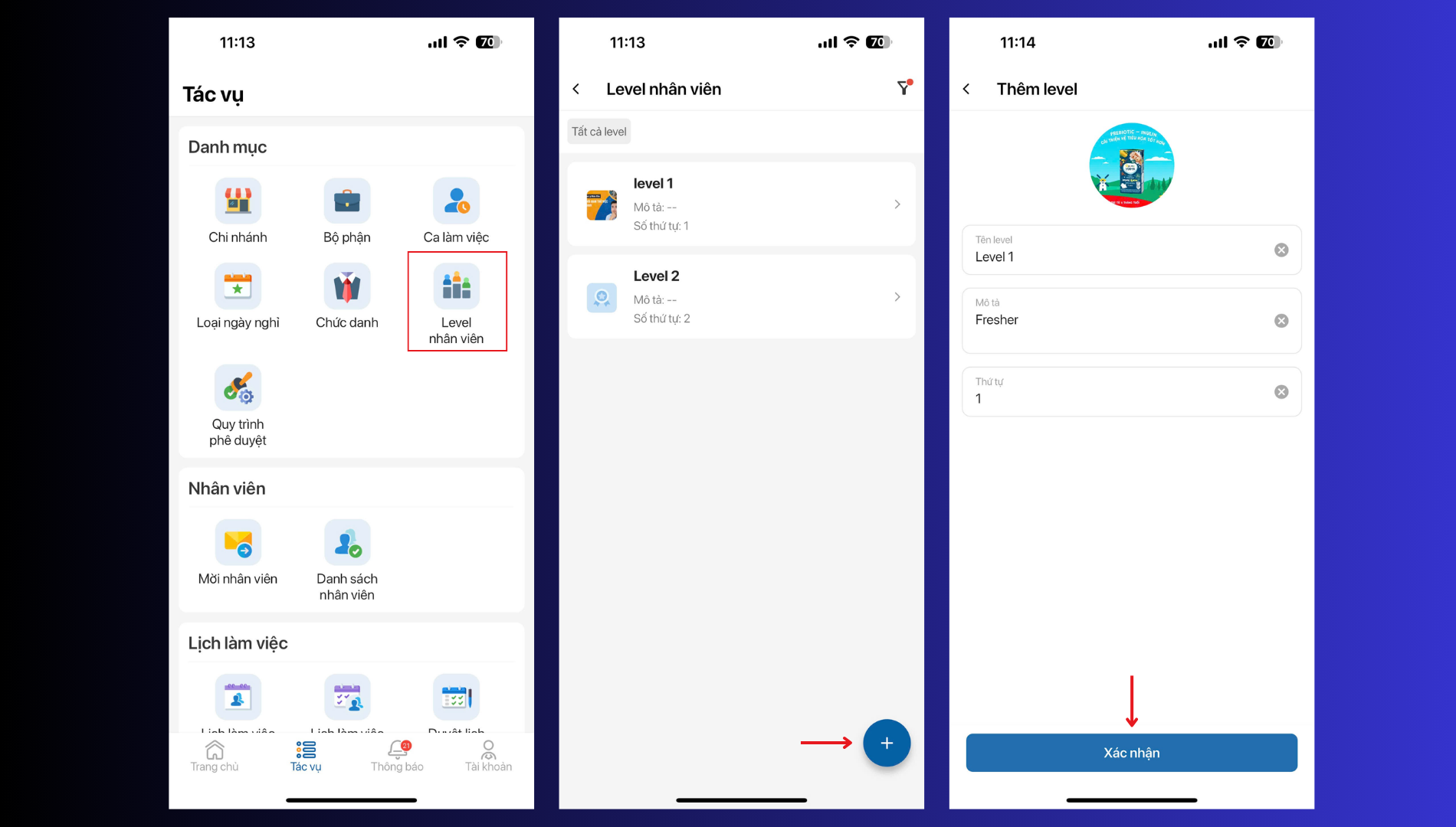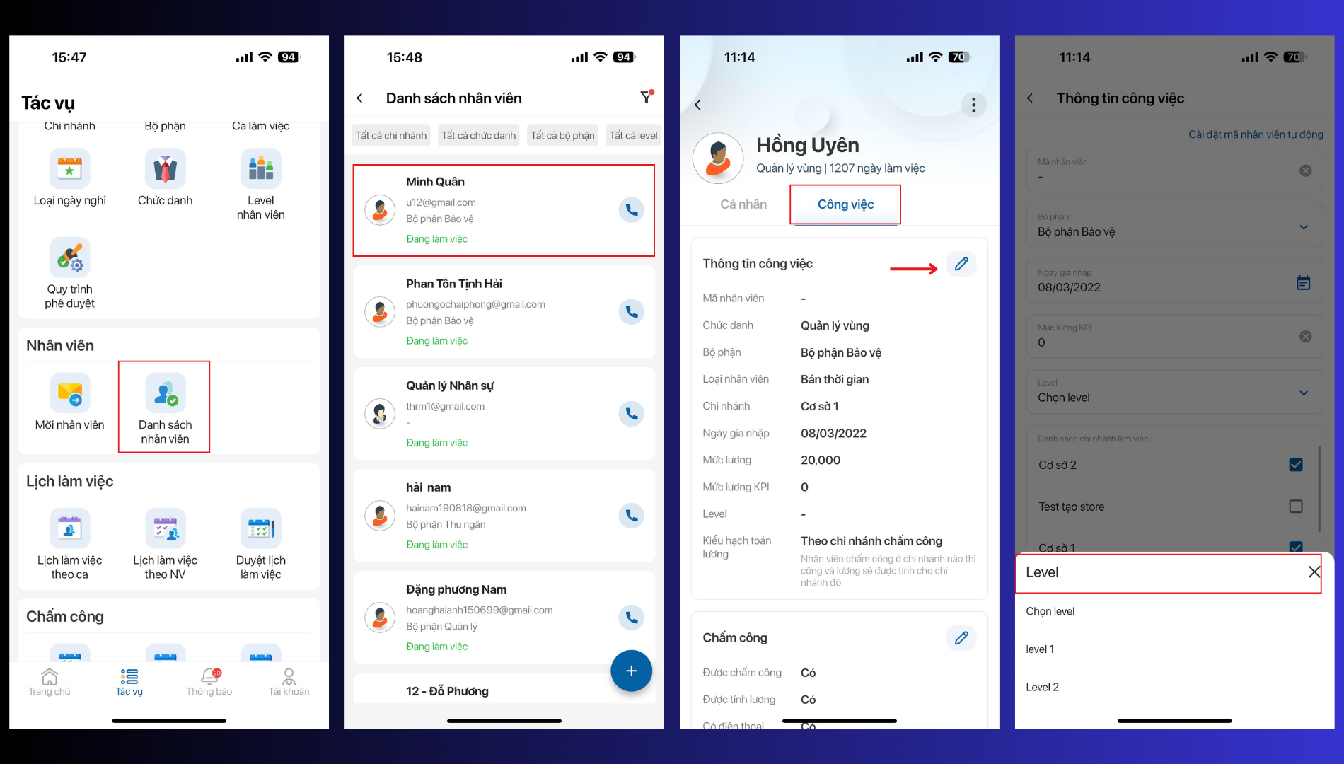 Bước 3: Gán level cho nhân viên
