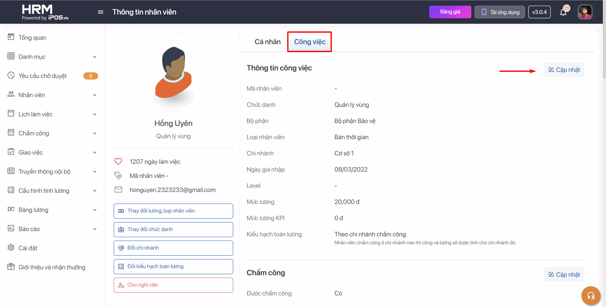 - Chọn vào chỉnh sửa thông tin nhân viên