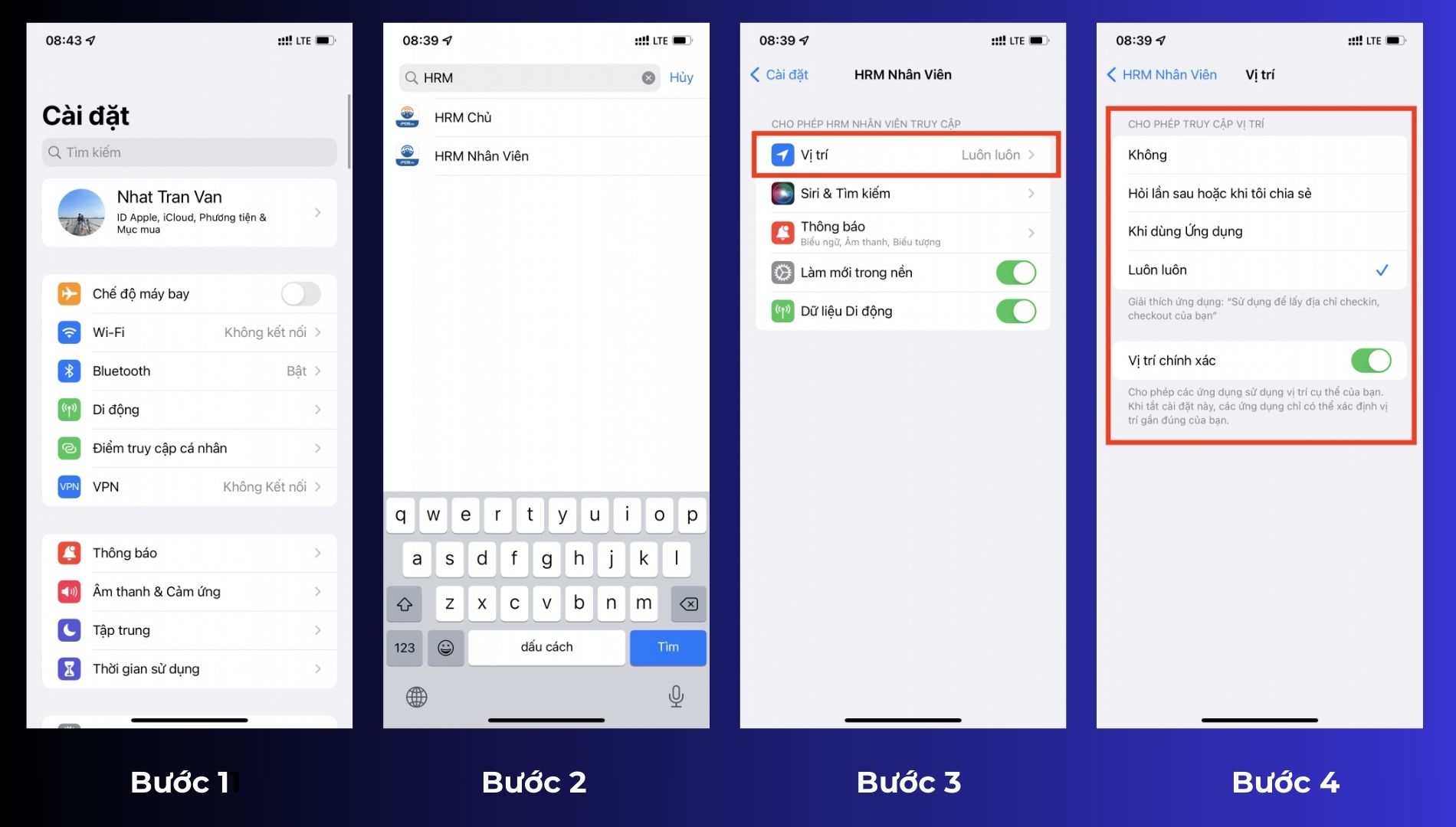 Bước 4: Chọn cho phép truy cập vị trí là Luôn luôn và bật vị trí chính xác
