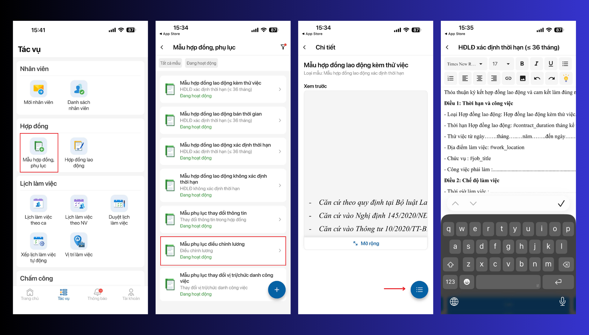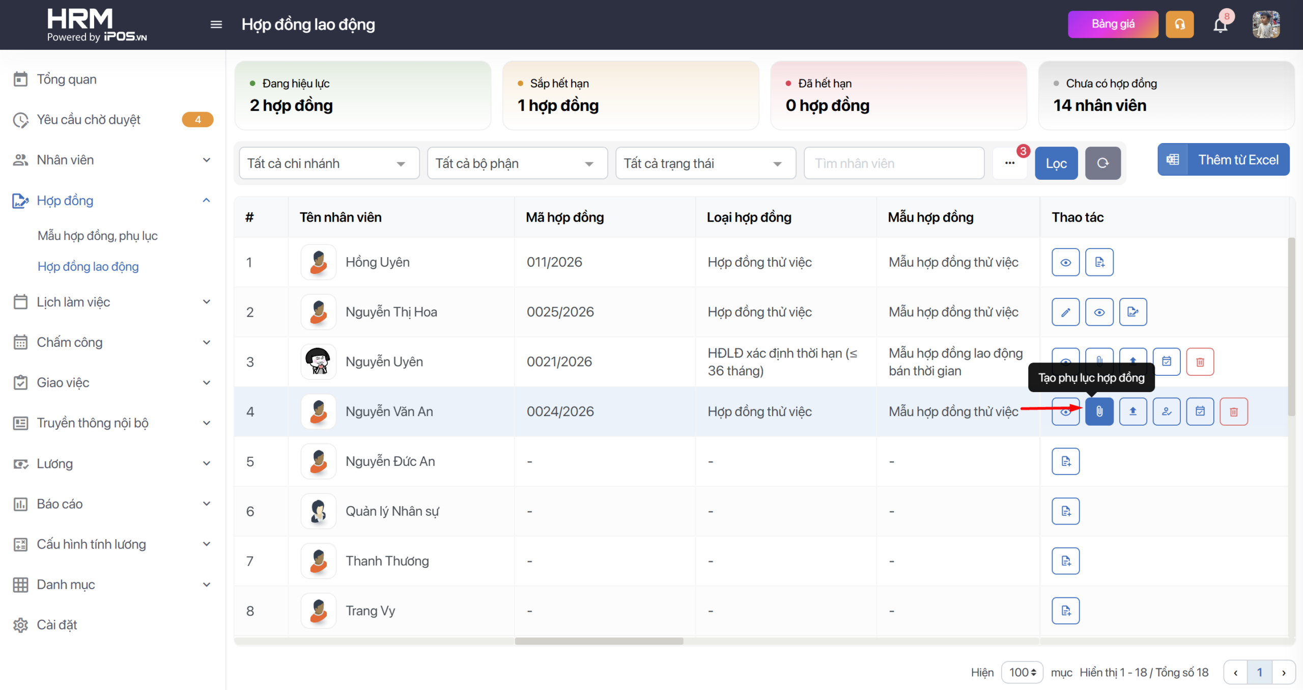 I. Thêm hợp đồng và phụ lục hợp đồng cho nhân viên.