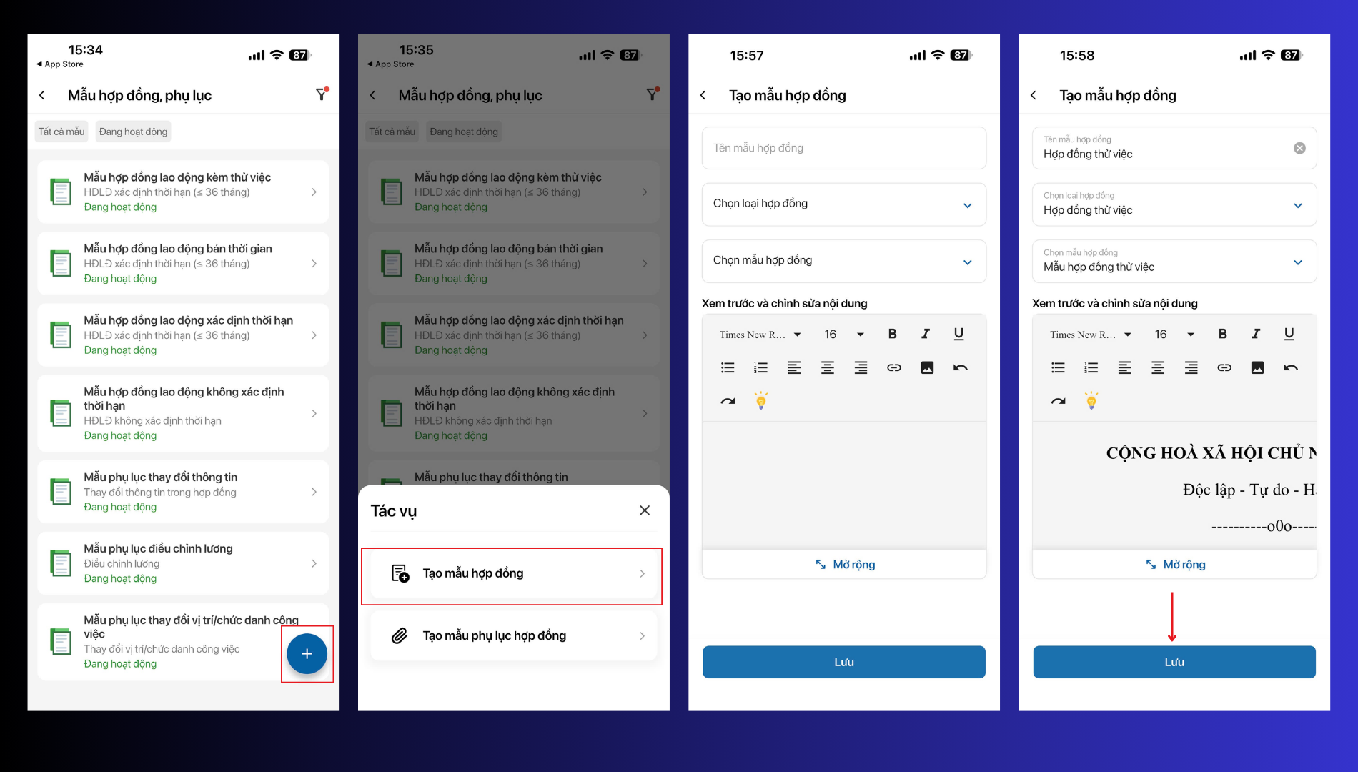 2. Tạo mẫu hợp đồng mới