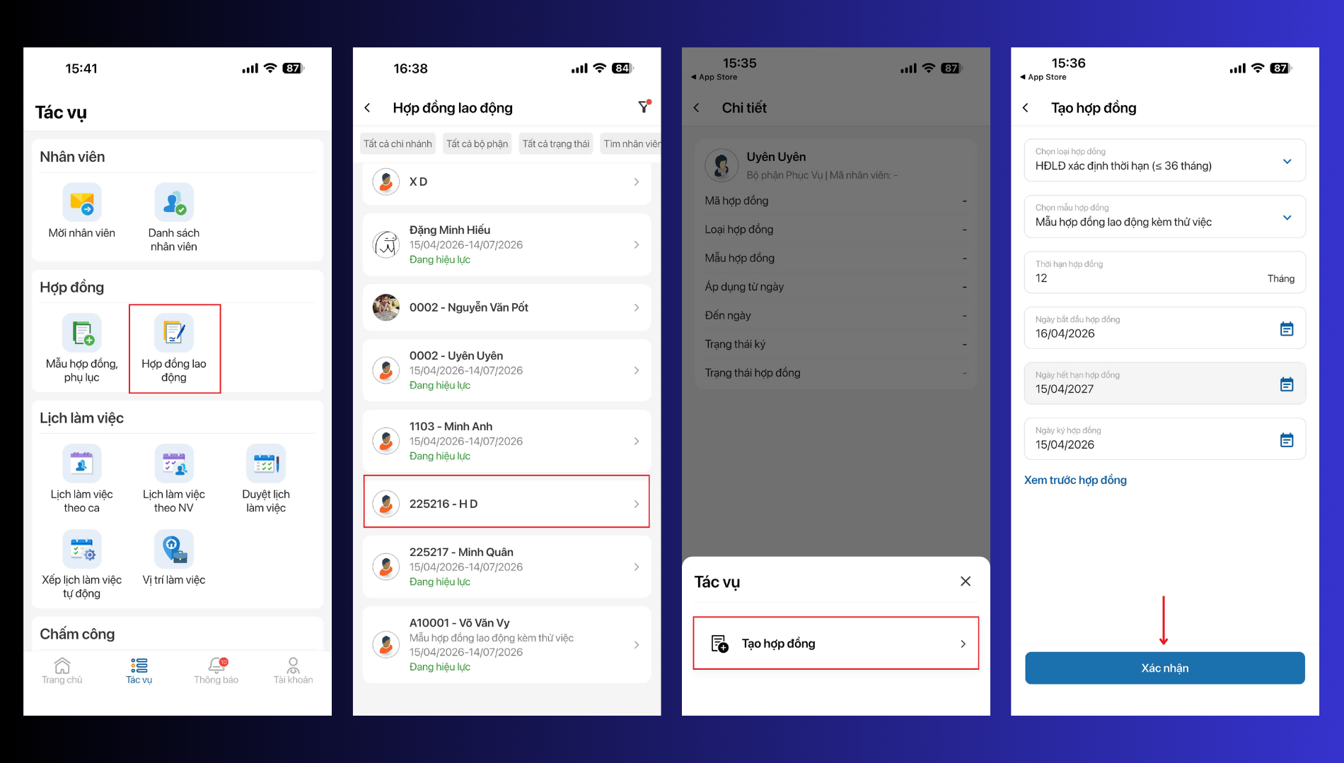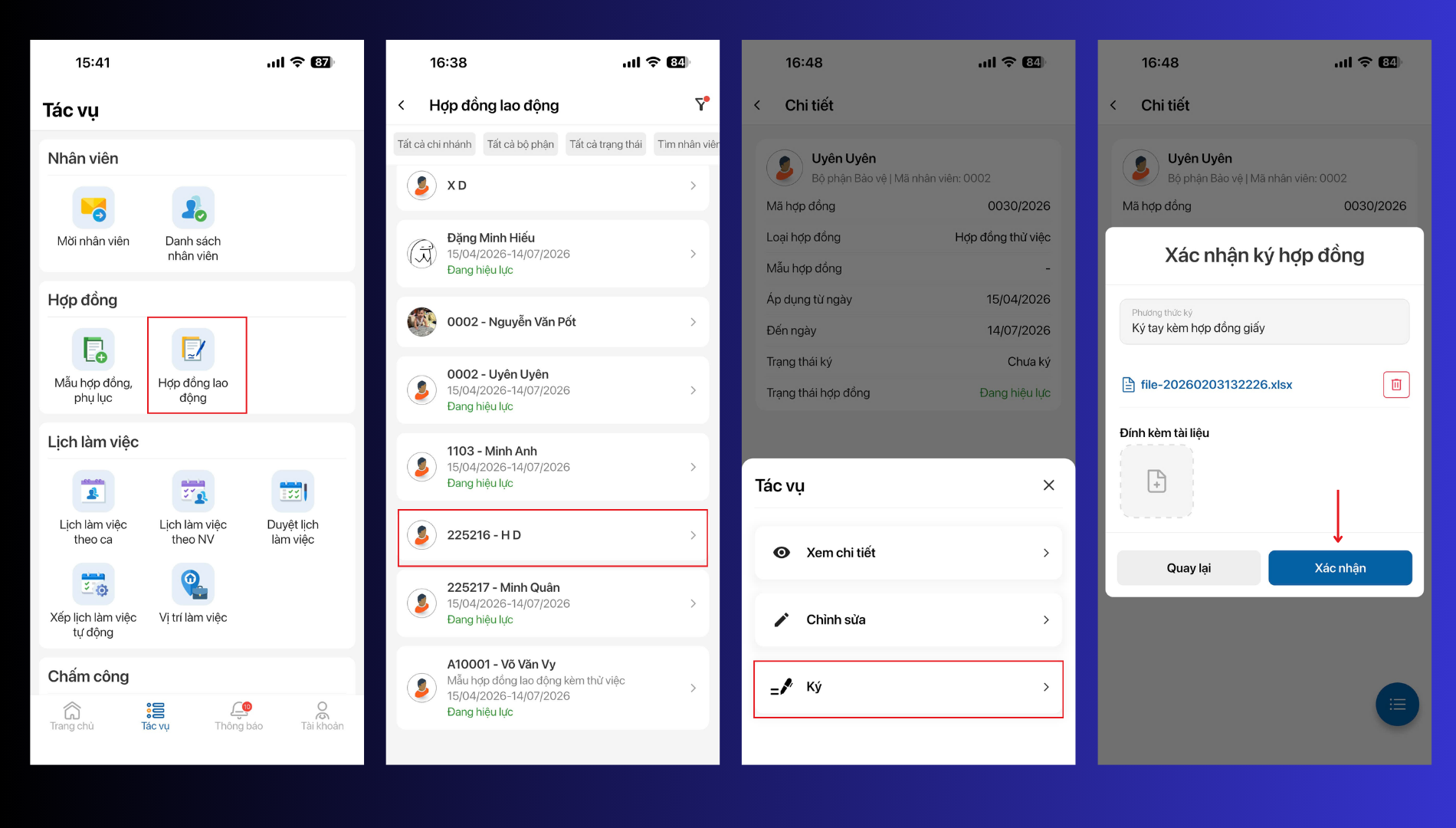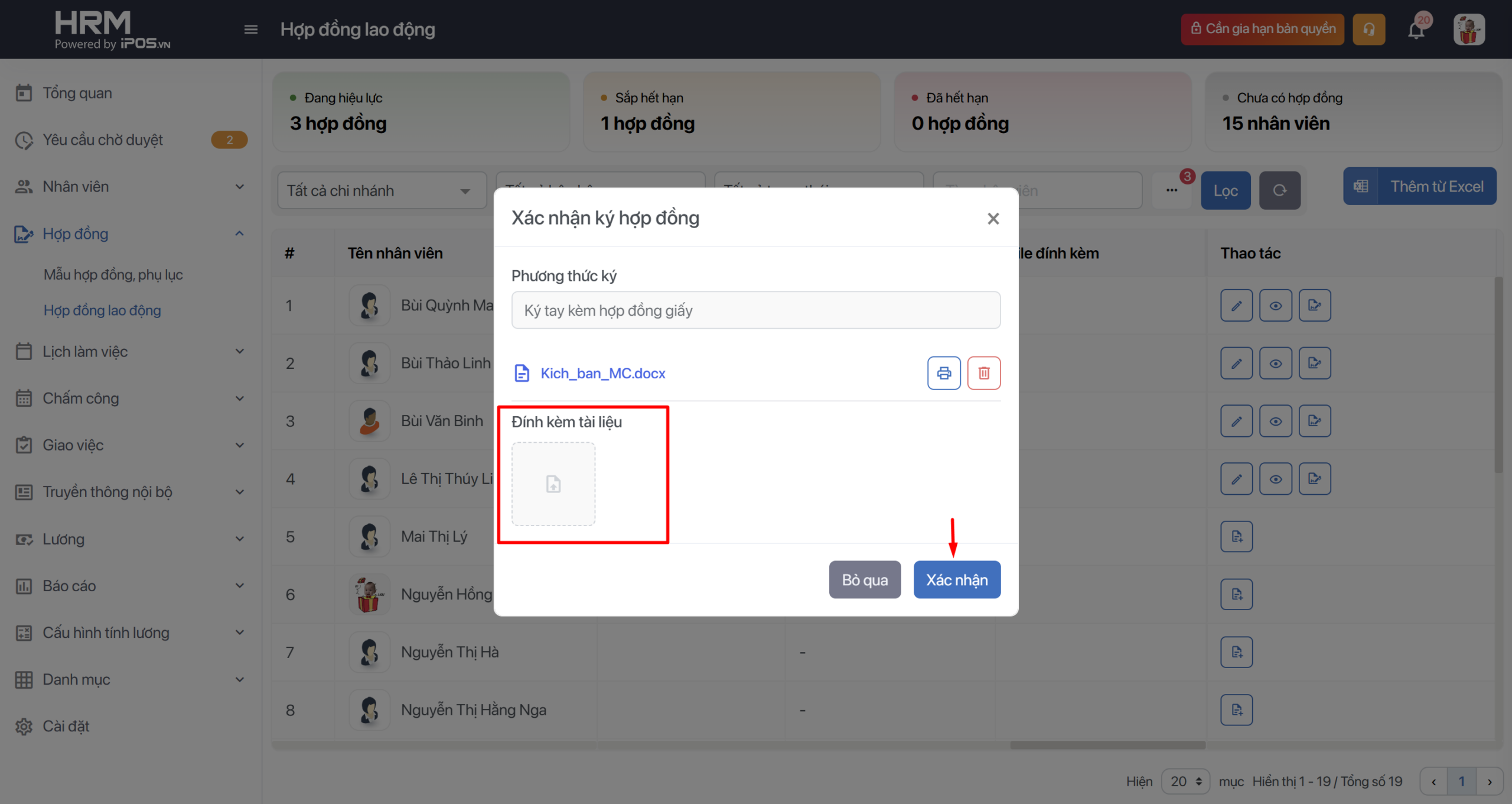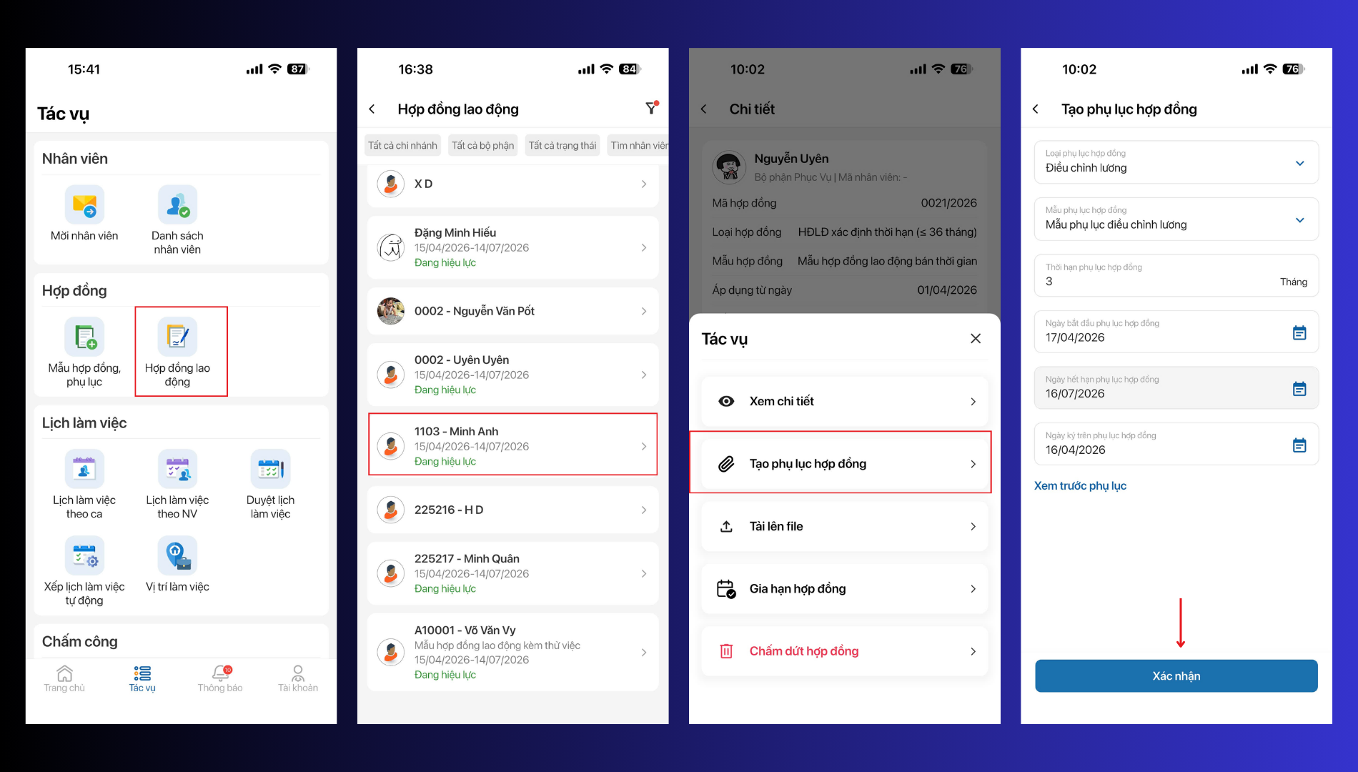 Bước 2: Gắn hợp đồng/ Phụ lục hợp đồng cho nhân viên