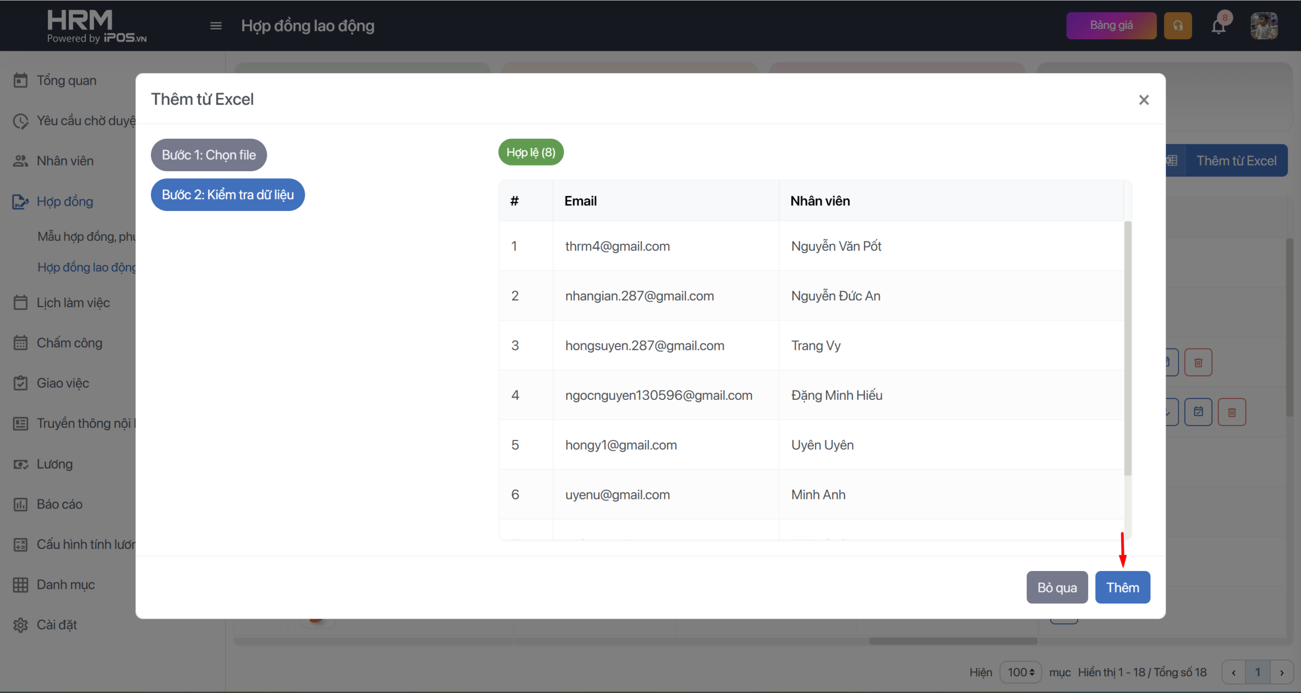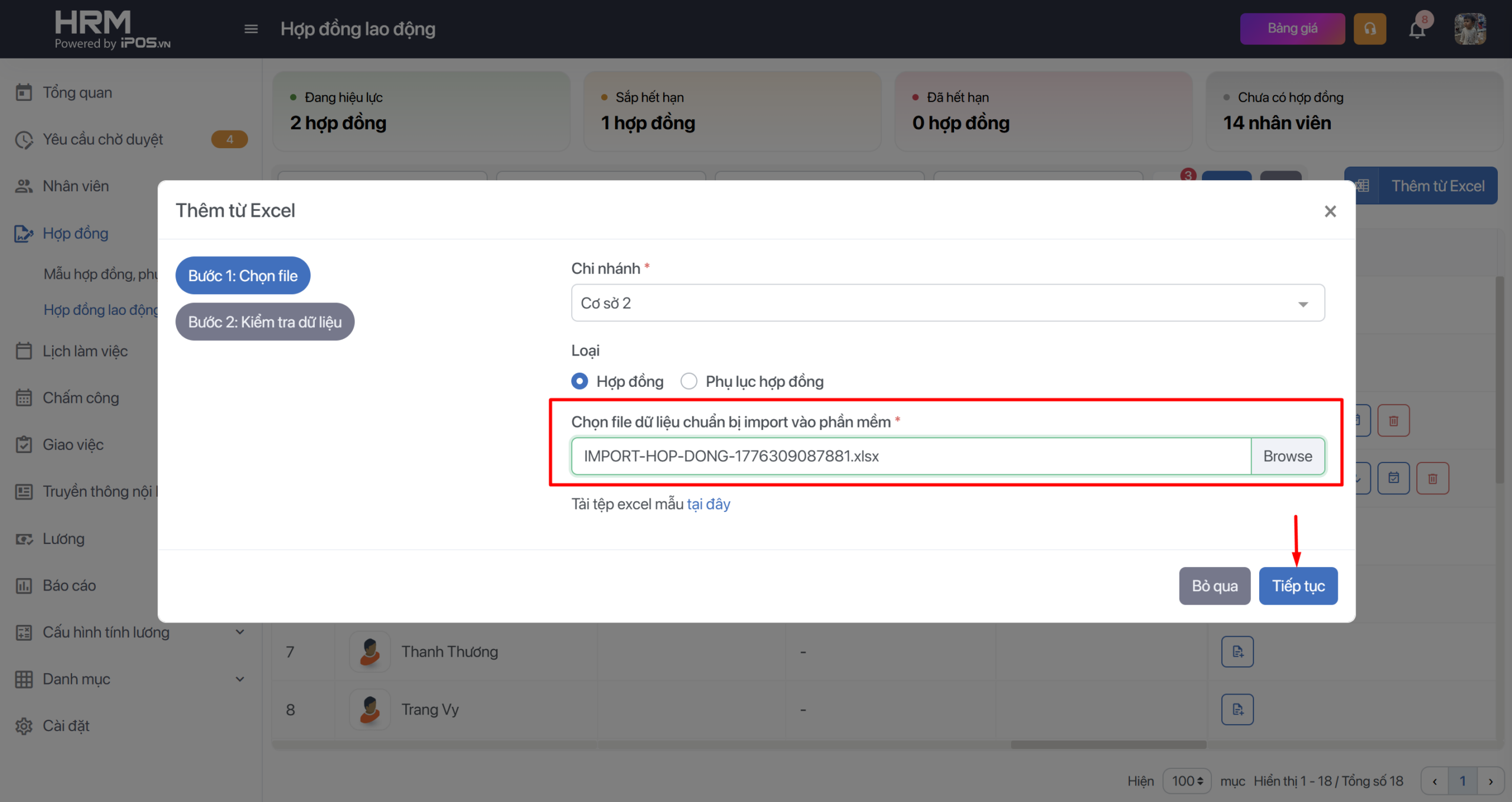 Cách 2: Thêm hợp đồng, phụ lục hợp đồng cho nhiều nhân viên một lúc bằng cách import file excel.