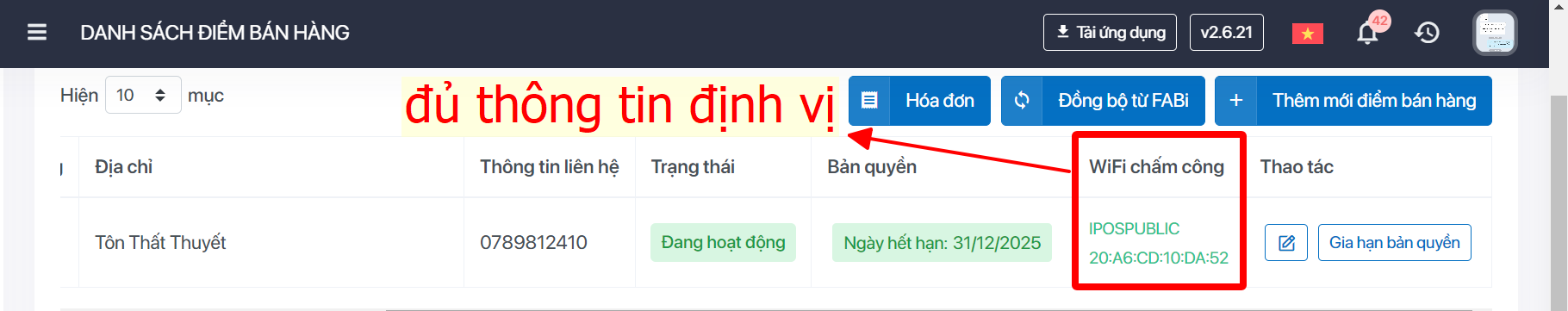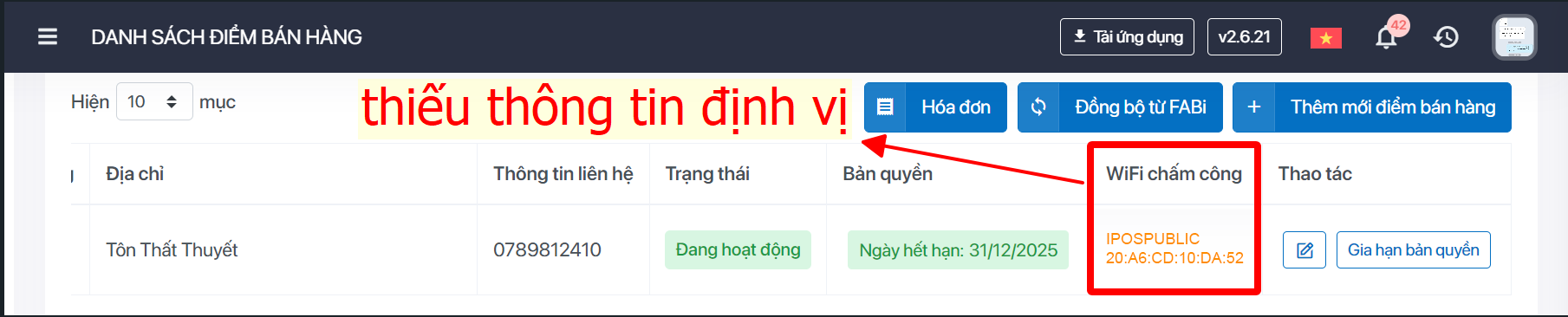 - Trường hợp wifi chấm công hiển thị màu cam là do khi thao tác cấu hình wifi phần mềm không lấy được thông tin định vị điểm bán hàng, bạn vui lòng thao tác cấu hình wifi lại cho đến khi phần mềm hiển thị màu xanh lá để hoàn thành công việc.